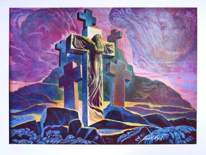 1930 Wien - 2015 ebd. "Kreuzigung". Giclée auf Baumwollpapier. Unten rechts signiert. Unten rechts mit Prägestempel "Galerie Edition F". Bildgröße ca. 41 x 55 cm, Blattgröße ca. 48 x 61 cm.