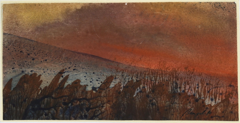 Bengel 1943 Berlin. Schüler Dalìs. Landschaft im Morgenrot. Aquarell auf Bütte. Unten rechts signiert und datiert (19)80. Größe ca. 11,5 x 22, 5 cm. Guter Zustand.