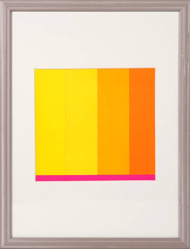 Geiger, Rupprecht 1908 München - 2009 ebd. Farbserigraphie auf Papier. Gelb nach Orange, 1985. Wohl erschienen zum Ausstellungskatalog "Retrospektive", Akademie der Künste Berlin, 1985. Hinter Glas und Passepartout an den Ecken klebemontiert. Blattgröße ca. 20,5 x 21,5, Rahmen ca. 40 x 30 cm. Leicht fleckig, leichteste Kratzspur ohne Farbverlust.