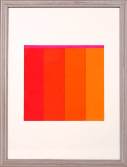 Geiger, Rupprecht 1908 München - 2009 ebd. Farbserigraphie auf Papier. Orange nach Rot, 1985. Wohl erschienen zum Ausstellungskatalog "Retrospektive", Akademie der Künste Berlin, 1985. Hinter Glas und Passepartout an den Ecken klebemontiert. Blattgröße ca. 20,5 x 21,5, Rahmen ca. 40 x 30 cm. Leicht fleckig.