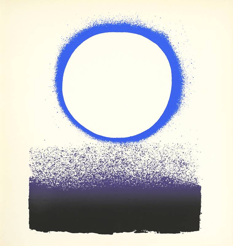 Geiger, Rupprecht 1908 München - 2009 ebd. Farbserigraphie auf Velin, Handdruck. Blauer Kreis. Verkleinertes Motiv als beiliegender Vorzugsdruck zum WVG 1972. Entwurf 1965. Gedruckt bei Institut Manfred Laube, München. Blattgröße ca. 29,7 x 27,7 cm.