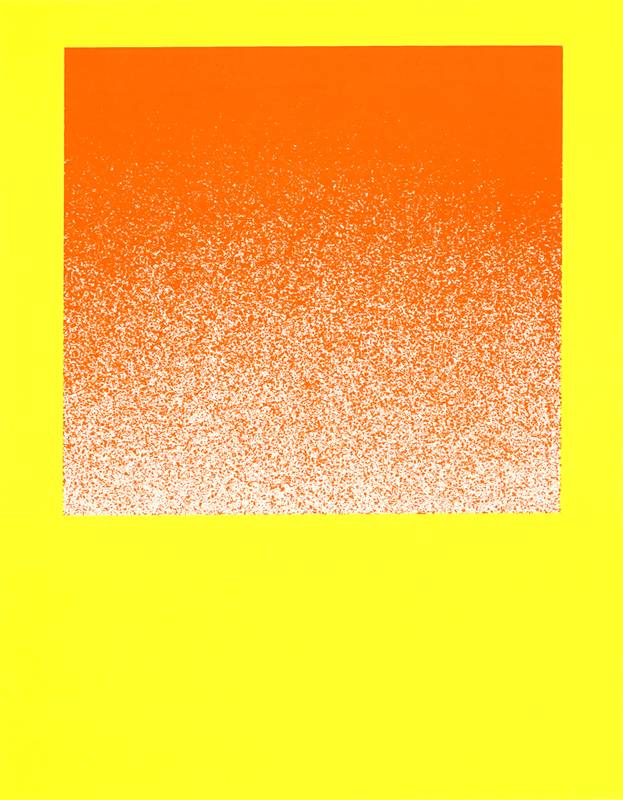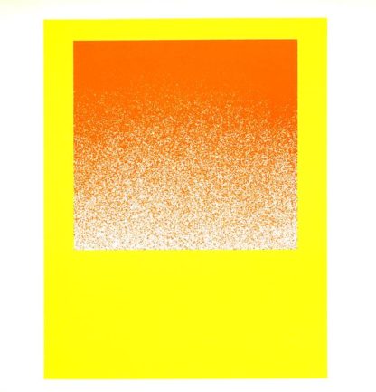 1908 München - 2009 ebd. Farbserigraphie auf Velin, Handdruck. Leuchtorange auf Leuchtgelb. Verkleinertes Motiv als beiliegender Vorzugsdruck zum WVG 1972. Entwurf 1965. Gedruckt bei Institut Manfred Laube, München. Blattgröße ca. 29,7 x 27,6 cm.