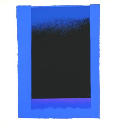 1908 München - 2009 ebd. Farbserigraphie auf Velin, Handdruck. Schwarz auf Blau und Pink. Verkleinertes Motiv als beiliegender Vorzugsdruck zum WVG 1972. Entwurf 1965. Gedruckt bei Institut Manfred Laube, München. Blattgröße ca. 29,7 x 27,6 cm.