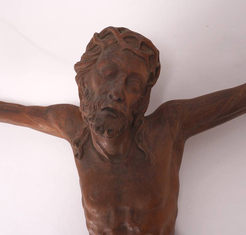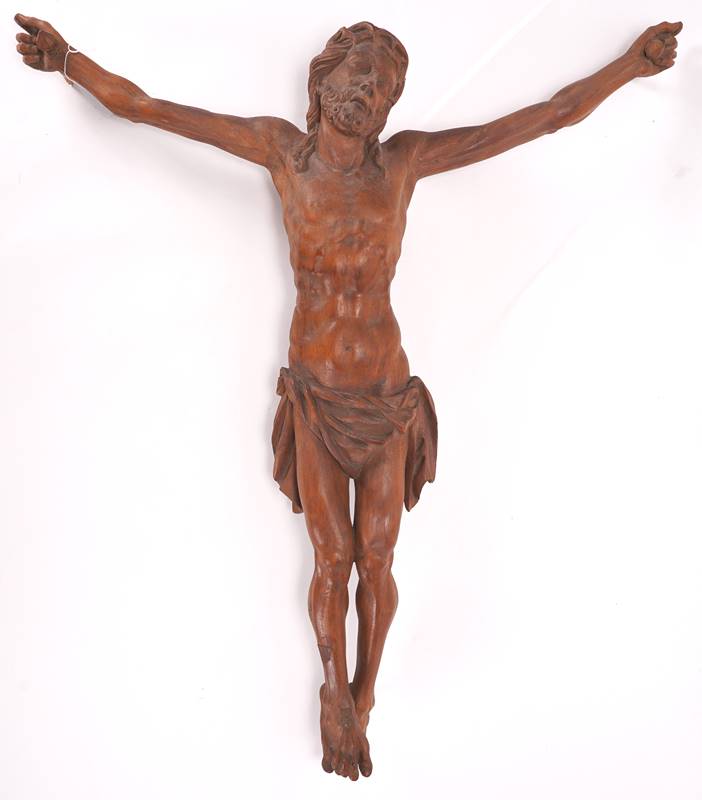 Corpus Christi 20. Jh. Holz geschnitzt. Äußerst naturalistisch gearbeiteter Corpus Christi im Dreinageltypus. Ohne Kreuz. Größe ca. 55 x 10,5 cm, Höhe ca. 68 cm.