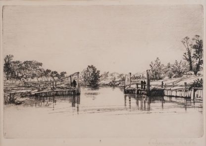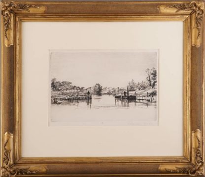 1818 London - 1910 Alresford. "Egham Lock", 1859. Radierung. Unter dem Druck rechts mit Bleistift signiert. Hinter Glas und Passepartout gerahmt, ungeöffnet. Plattengröße ca. 15 x 22,5 cm, Rahmen ca. 37,5 x 43 cm. Minimal fleckig.
