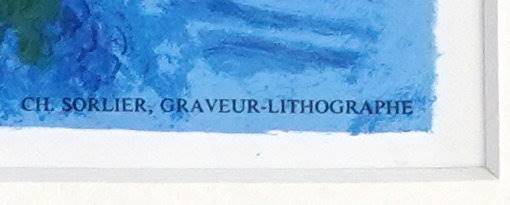Chagall, Marc Witebsk 1887 - 1985 Saint-Paul-de-Vence nach. Plakat nach Le Soleil de Paris für die Ausstellung im Louvre 1978. Farblithgrafie. Unten rechts bezeichnet Ch. Sorlier, Grapveur-Lithographe, unten links Centre George Pompidou/ Imp. Mourlot. Größe ca. 56,5 x 45 cm, hinter Passepartout und Glas gerahmt im Blattsilber belegtem Rahmen ca. 81 x 67 cm.