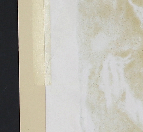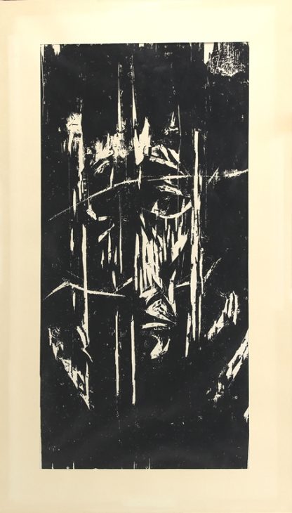 1893 Rümmingen - 1927 Basel. Hinter'm Stacheldraht. Holzschnitt auf Papier. Unten rechts signiert, darunter und verso bezeichnet. Größe des Blattes ca. 73 x 38,5 cm, hinter Passepartout unsachgemäß montiert ca. 77 x 44 cm. Blatt leicht eingerissen und geklebt.