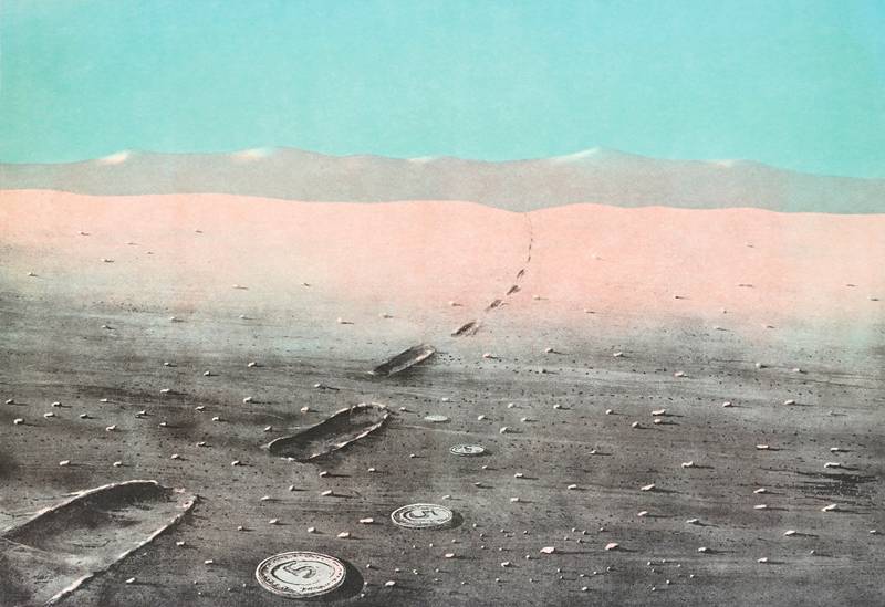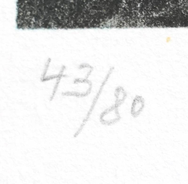 1929 Freiburg im Breisgau - 1994 Aalst. Farblithographie. "Spuren im Dünensand", 1978. Mit Bleistift unten rechts signiert und datiert (19)78, unten links nummeriert 43/80. Unten links mit Trockenstempel "ORIGINAL LITHOGRAPHIE mh". Bildgröße ca. 42 x 61 cm, Blattgröße ca. 59,5 x 79,5 cm. Entlang des linken und rechten Blattrandes leicht verfärbt.