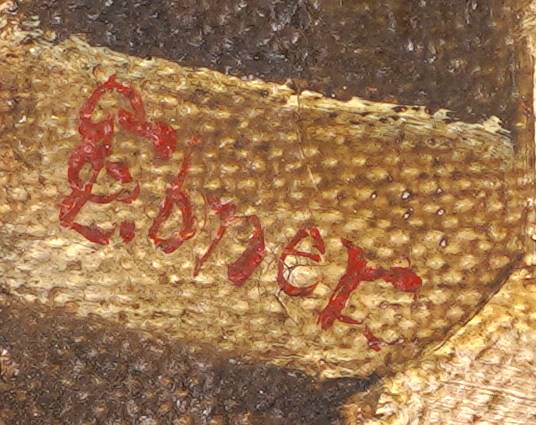 Ebner, Emil 1897 - 1989 Freiburg. Wohl dessen Vater. Hausmädchen mit einem Korb mit Blumen in einem prachtvollen Treppenaufgang. Öl auf Leinwand. Unten links signiert. Größe ca. 22 x 16 cm, Rahmen ca. 41 x 35 cm. Minimaler Farbverlust.