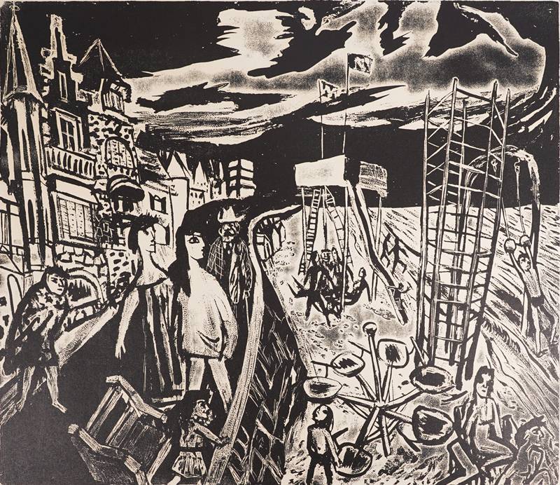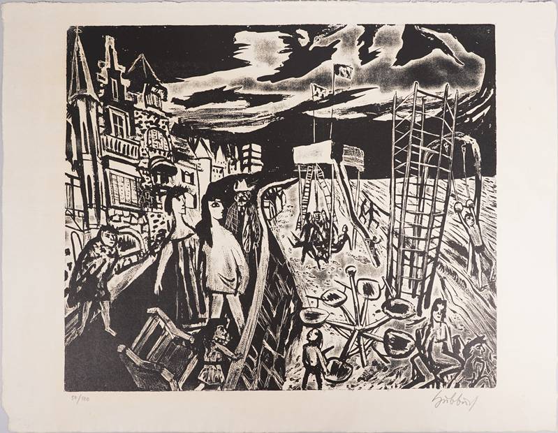 1891 Karlsruhe - 1979 ebd. "Am Strand von la Baule", um 1960. Holzschnitt auf Bütten. Unten rechts mit Bleistift signiert "Hubbuch", links nummeriert 50/100. Unten rechts mit Prägestempel "Graphikkreis der neuen Münchner Galerie Dr. Hiepe & Co. GmbH". Bildgröße ca. 45 x 53 cm, Blattgröße ca. 53 x 68 cm. Minimalst fleckig.