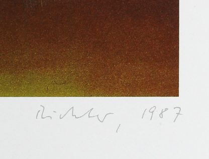 *1932 Dresden. Victoria II. Limitierte Farboffset Reproduktion des zweiten der beiden Hauptwerke, die Richter für die Eingangshalle der Victoria Versicherungen geschaffen hat. Unten rechts im Druck signiert und datiert 1987, verso der Widmungsvermerk für Jubilare. Größe ca. 60 x 40 cm, im Aluwechselrahmen hinter Glas präsentiert ca. 85 x 65 cm. Schöner Zustand.