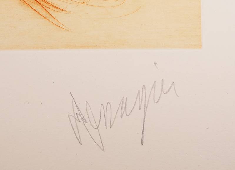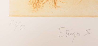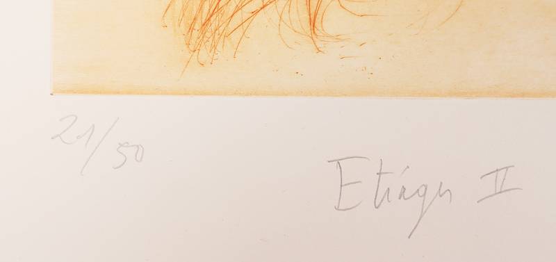 1920 Mougins - 1999 Montbéliard. "Etiages II", um 1968. Farbradierung auf Bütten. Unter dem Druck rechts mit Bleistift signiert, links nummeriert "21/50" und betitelt "Etiages II". In einem Passepartout am oberen Rand rückseitig klebemontiert. Größe der Platte ca. 36,6 x 49,8 cm, Blattgröße ca. 50 x 66 cm, Passepartout ca. 92 x 72 cm.