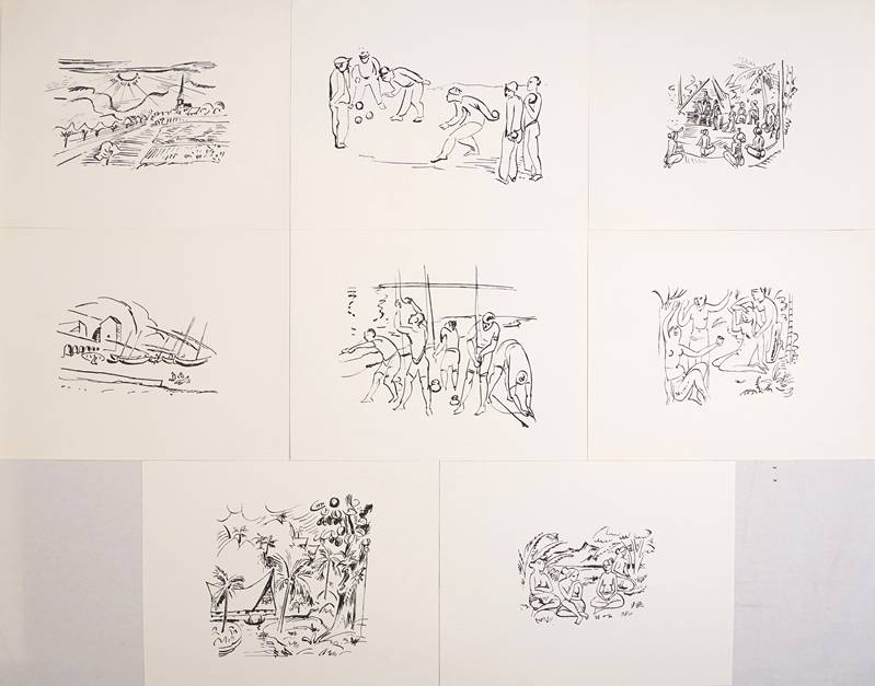 1881 Zwickau - 1955 West-Berlin. Acht Drucke nach Lithographien von Hermann Max Pechstein aus dem Jahr 1919, im Originalformat. 4 mal aus der Reihe "Reisebilder Südsee", 4 mal "Reisebilder Italien". 1972 erschienen in limitierter Auflage von 400 Exemplaren. Blattgröße ca. 35 x 28 cm.
