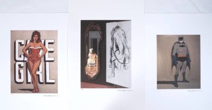 1935 Sacramento, Kalifornien - 2018 Oakland, Kalifornien, nach. Drei Offset-Lithografie auf Arches. Jeweils unten rechts im Druck signiert, links mit Bleistift nummeriert: Cave Girl 76/250, Frauenakt 80/500 und Batman 201/250. Jeweils mit Prägestempel unten links "Georges Israel Editeur". Bildgrößen ca. 32 x 24 cm, 34,7 x 25,7 cm und 27,7 x 22,5 cm, max. Blattgröße ca. 57,3 x 38,5 cm.