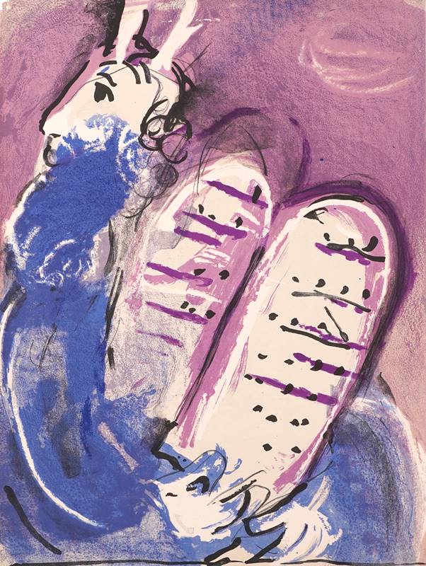 Chagall, Marc 1887 Witebsk - 1985 Saint-Paul-de-Vence, nach. Farblithographie nach Moses, 1956. Verso bedruckt. Wohl aus Verve oder DLM. Lose in Passepartout. Blattgröße ca. 35,5 x 26 cm. Am oberen Rand leicht beschädigt.