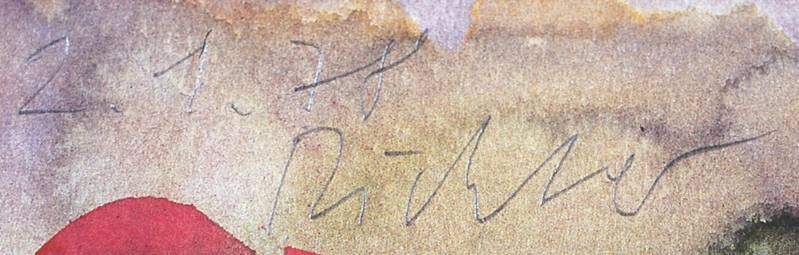 *1932 Dresden. Ohne Titel, 2.1.1978. Farboffsetdruck. Im Druck oben links datiert und signiert "2.1.78 Richter". Unten mittig typografisch bezeichnet und datiert. Bildgröße ca. 29 x 40,5 cm, Blattgröße ca. 39,8 x 55 cm. Ecke oben rechts leicht geknickt.