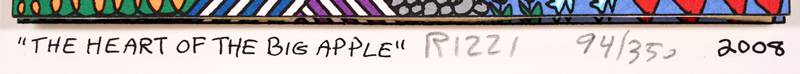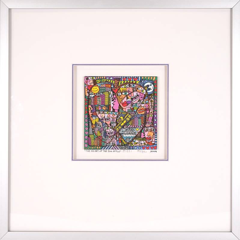 1950 New York - 2011 ebd. "The heart of the big apple". 3D Serigraphie. Unten links betitelt, mittig signiert, rechts nummeriert 94/350 und datiert 2008. Passepartoutausschnitt je ca. 18 x 18 cm, hinter Glas und Passepartout gerahmt ca. 45,5 x 45,5 cm.