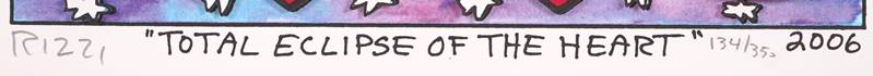 1950 New York - 2011 ebd. "The total eclipse of the heart". 3D Serigraphie. Unten links signiert, mittig betitelt, rechts nummeriert 134/350 und datiert 2006. Passepartoutausschnitt je ca. 21 x 27 cm, hinter Glas und Passepartout gerahmt ca. 40,5 x 50,5 cm.