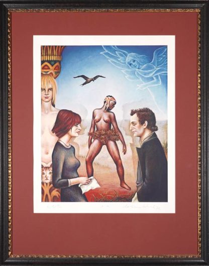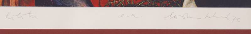 1894 Miesbach - 1982 Stuttgart. "Lilith". Farbserigraphie. Unten rechts handsigniert und datiert (19)76, mittig bezeichnet e.a. und unten links betitelt. Darstellungsgröße ca.53 x 43,5 cm, hinter Passepartout und Glas gerahmt ca. 89 x 71 cm.