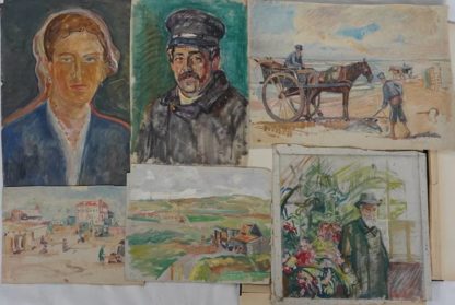 1887 Freiburg i.Br. - 1955 Zürich. Eine Mappe mit ca. 6 Leinwänden. Drei Porträts und drei Landschaften. Öl auf Leinwand. Teils signiert, teils verso mit Nachlassaufkleber der Künstlerwitwe mit Signatur und Nummerierung. Größe der Mappe ca. 71 x 53 cm. Zustand wie abgebildet. Aus dem Nachlass des Künstlers.