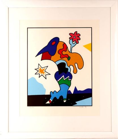 Alt, Otmar * 1940 Wernigerode. Ohne Titel 1979. Farblithographie. Unten links signiert und datiert, links nummeriert 129/150. Größe ca. 406 x 335 mm, hinter Passepartout und Glas gerahmt ca. 71,5 x 60,5 cm.