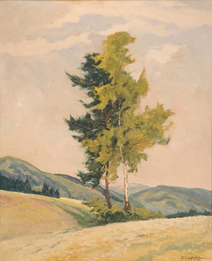 Wickertsheimer, Wilhelm 1886 Lahr im Schwarzwald - 1968 ebd. Bei der Heidburg. Öl auf Karton. Unten rechts signiert und datiert 1945, verso bezeichnet. Größe ca. 67 x 55 cm, Rahmen ca. 79 x 65 cm.
