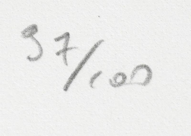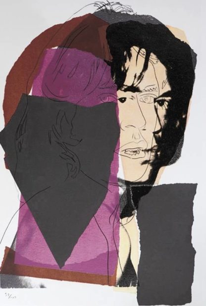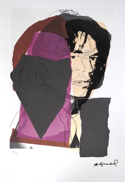 Warhol, Andy 1928 Pittsburgh - 1987 New York, nach. Mick Jagger. Offset-Lithografie auf Arches. Unten rechts im Druck signiert, unten links mit Bleistift nummeriert 97/100. Mit Wasserzeichen "Arches France" und Trockenstempel "Georges Israel Editeur" am unteren Blattrand. Verso dreifach gestempelt von der Art Gallery New York, Life Tree Art New York und Leo Castelli New York, sowie ein Hologramm-Aufkleber "verification of authenticity www.grafy.blog". Bildgröße ca. 46 x 31 cm, Blattgröße ca. 57 x 38,5 cm.