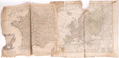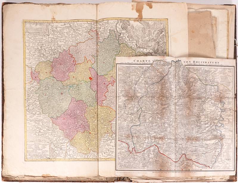 Mappe mit ca. 44 Landkarten Europas teils 18. sowie 19. Jh. Teils Kupferstiche, teils altkoloriert. Darunter Nova Et Exacta Mappa Geographica exhibens Circulum Westphalicum ... 1758. Belli typus in Italia victricis Aquilae ... 1707. Europa secundum legitimas Projectionis Stereographicae ... 1743. Altersbedingter Zustand. Teils beschädigt und beschmutzt. Bitte selber besichtigen.