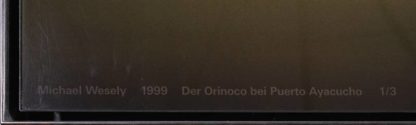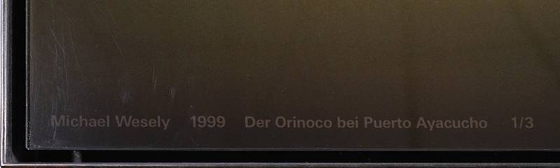 1963 München. "Der Orinoco bei Puerto Ayacucho". Ilfochrome auf Aluminium aufgezogen, unter Glas kaschiert. Unten links typografisch bezeichnet, datiert 1999, betitelt und nummeriert 1/3. Größe ca. 100 x 150 cm. In Metallrahmen montiert, Größe ca. 103 x 153 cm. Gewicht ca. 31 kg. Kein Versand möglich, wir empfehlen gerne eine Spedition. Passende Transport-Holzboxen existieren und können bei uns erworben werden.