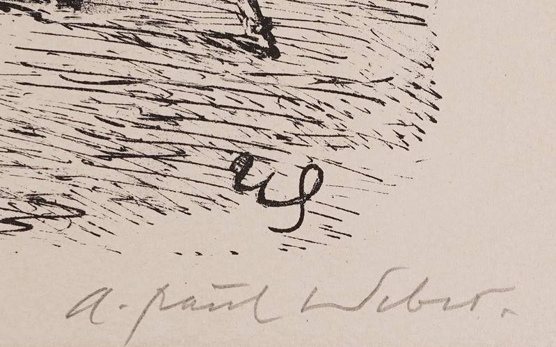 1893 in Arnstadt - 1980 in Schretstaken. Lithographie auf Bütten. "Die feindlichen Brüder", 1967. Im Druck unten rechts monogrammiert und links nummeriert. Unter dem Druck rechts mit Bleistift signiert, links mit rotem Künstlerstempel. Unten in der rechten Ecke mit Wasserzeichen der "Clan-Presse". Plattengröße ca. 28 x 40,8 cm. Blattgröße ca. 65 x 53,5 cm. Leicht Fleckig am Rand.