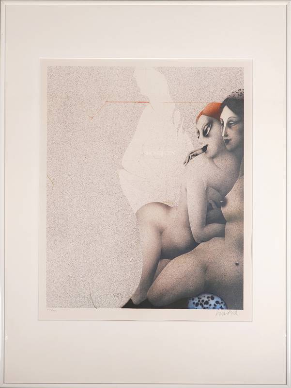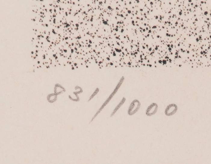 1927 Eberswalde - 2010 Saint-Pierre-de-Vassols. "Türkisches Bad". Lithographie auf BFK Rives Bütten. Unten rechts handsigniert, unten links nummeriert 831/1000, unten links mit Trockenstempel der Druckerei, unten rechts mit Wasserzeichen des Papiers. Aus "Lithographien I" 1981 Edition Volker Huber Offenbach am Main, gedruckt bei Matthieu, Zürich. Größe ca. 51 x 42 cm, hinter Passepartout und Glas gerahmt ca. 81 x 61 cm. Vgl. Riediger 669.