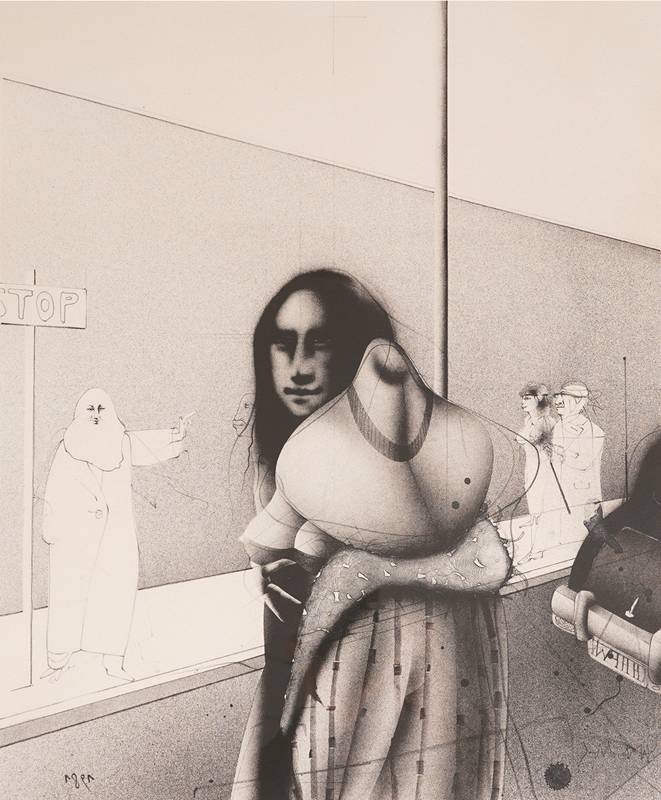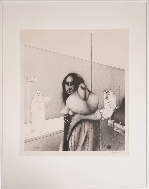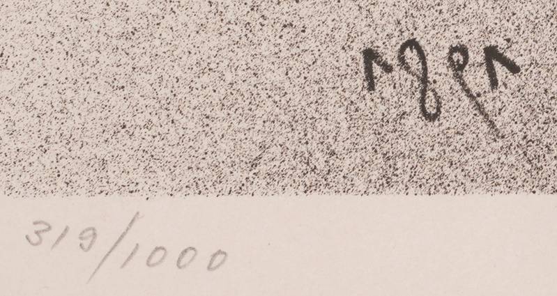 1927 Eberswalde - 2010 Saint-Pierre-de-Vassols. "Straßenszene". Lithographie auf BFK Rives Bütten. Unten rechts handsigniert, unten links nummeriert 310/1000, unten links mit Trockenstempel der Druckerei, unten rechts mit Wasserzeichen des Papiers. Aus "Lithographien I" 1981, Edition Volker Huber Offenbach am Main, gedruckt bei Matthieu, Zürich. Druckgröße ca. 51 x 42 cm, hinter Passepartout und Glas gerahmt ca. 81 x 61 cm. Vgl. Riediger 670.