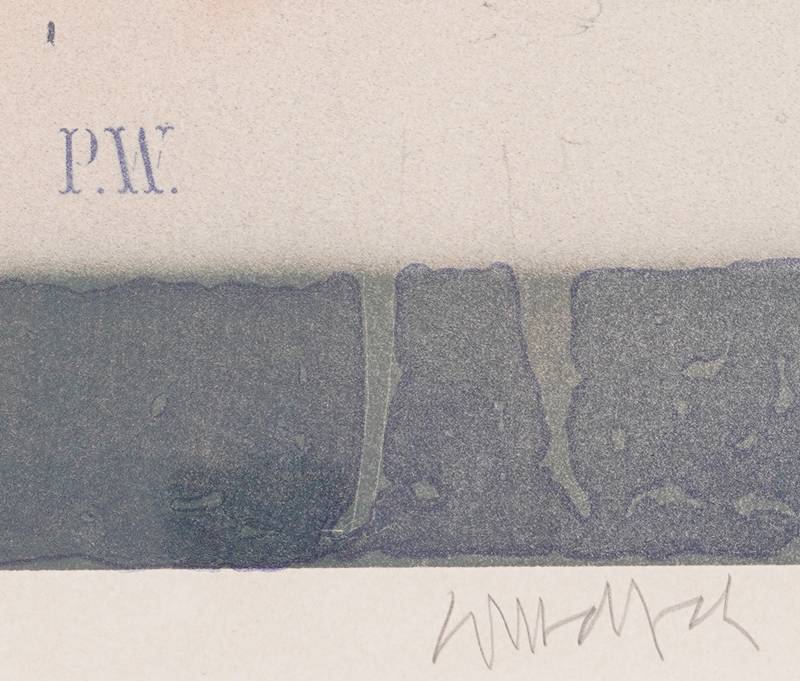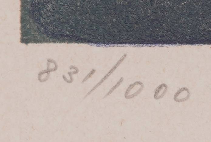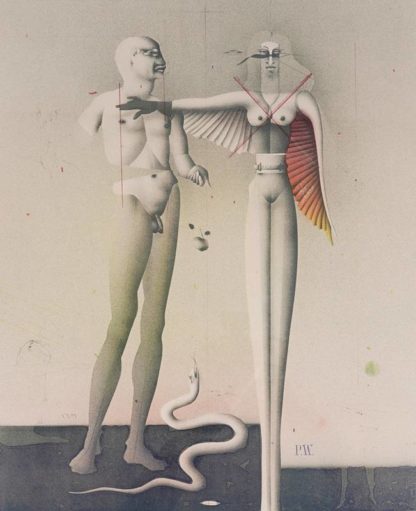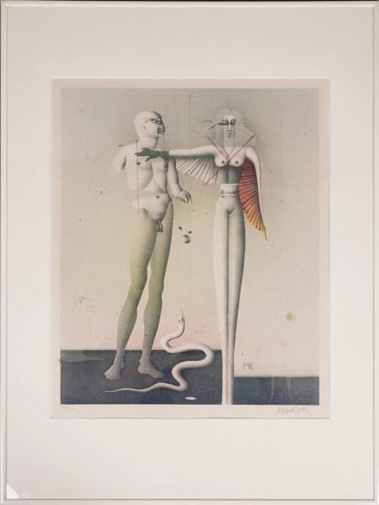1927 Eberswalde - 2010 Saint-Pierre-de-Vassols. "Adam und Eva, nach Dürer". Lithographie auf BFK Rives Bütten. Unten rechts handsigniert, unten links nummeriert 831/1000, unten links mit Trockenstempel der Druckerei, unten rechts mit Wasserzeichen des Papiers. Aus "Lithographien I" 1981, Edition Volker Huber Offenbach am Main, gedruckt bei Matthieu, Zürich. Druckgröße ca. 51 x 42 cm, hinter Passepartout und Glas gerahmt ca. 81 x 61 cm. Vgl. Riediger 672.