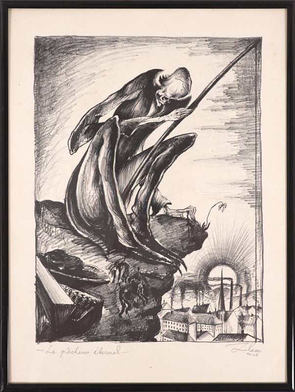1898 Budapest - 1969 New York City. "Le pêcheur éternel", 1924. Lithographie auf Papier. Unten rechts mit Bleistift signiert und datiert, links bezeichnet. Ein Blatt aus dem Mappenwerk "Kaleidoskop". Davon wurden 50 handsignierte Exemplare herausgegeben. Hinter Glas gerahmt. Blattgröße ca. 40 x 30 cm, Rahmen ca. 41,5 x 30,5 cm.