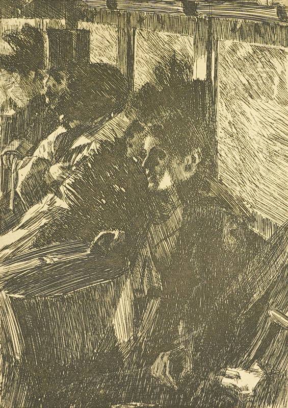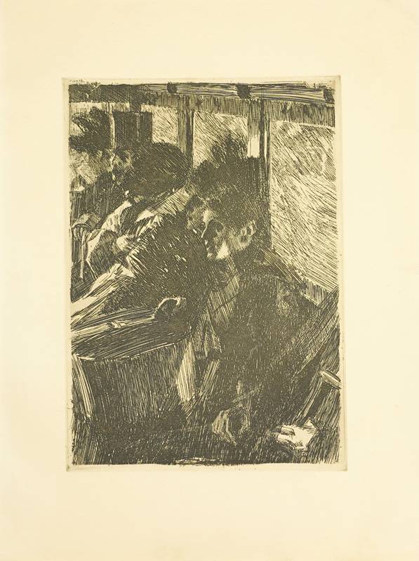Zorn, Anders Leonard 1860 Mora - 1920 ebd. "Omnibus" 1892. Späterer Tiefdruck auf Bütten, wohl um 1920. Bildgröße ca. 22,4 x 15,8 cm, Blattgröße ca. 32 x 24 cm. Mit Griffspuren am rechten Blattrand.