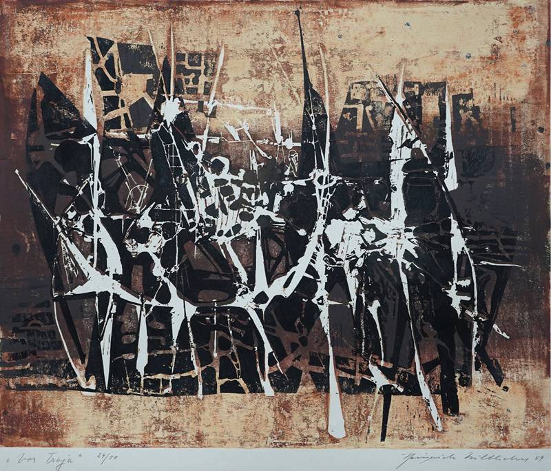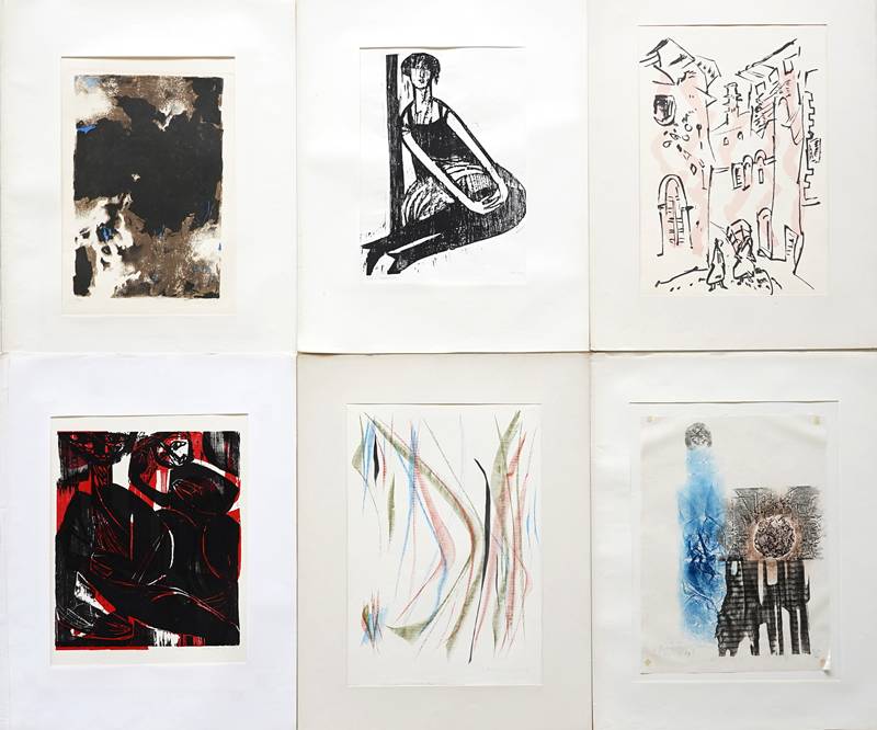 Meist 1960er Jahre. Diverse Künstler und Techniken. 4 Farblithografien von Fred Alfred Theophil Fathwinter, 1x Gerhard Wendland (Serigraphie), 1x Bernhard Jäger (Farblithografie), 1x Heinz Günther (Farbserigrafie), 1x Urd von Henting (Holzschnitt), 1x Johannes Schreiter (Farblithografie), 1x David Maria Kiss (Holzschnitt), 1x Heinrich Wilthelm (Holzschnitt), 2x unleserlich signiert. Jeweils signiert, nummeriert und datiert, teils bezeichnet. Meist in einem Passepartout. Max. Größe ca. 92 x 74 cm. Teils mit Gebrauchsspuren.