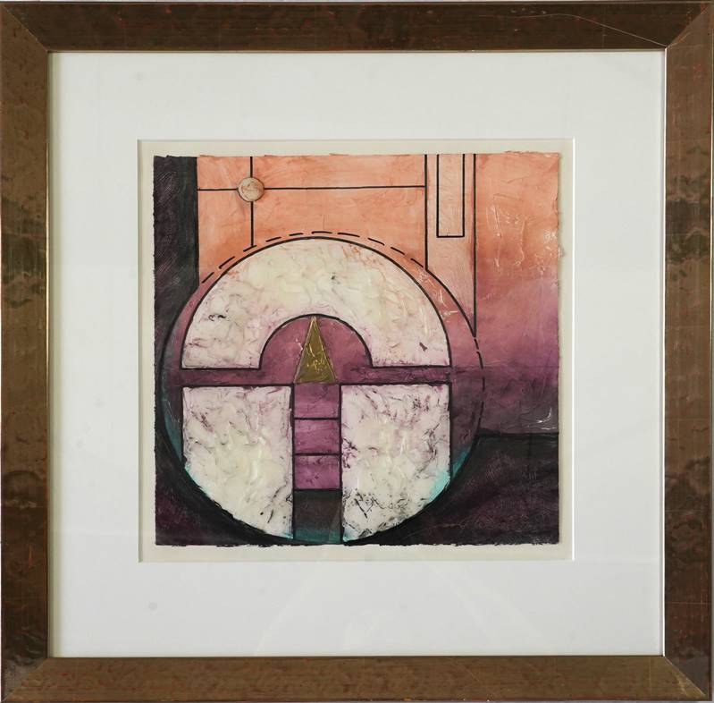 Groff, Ralph 20. Jh. Abstrakte Komposition. Mischtechnik. Unten rechts signiert. Größe ca. 38 x 38 cm, hinter Passepartout und Glas gerahmt ca. 66 x 77 cm.