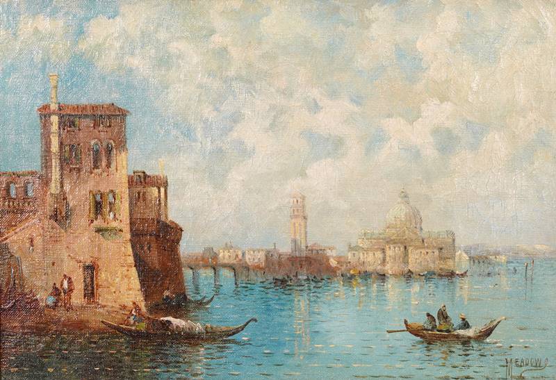 Meadows, Arthur Joseph London 1842-1907. Ansicht von Venedig. Öl auf Leinwand. Unten rechts signiert. Größe ca. 26 x 36 cm. Rahmen ca. 39 x 49 cm.