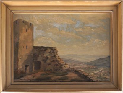 Christen, Walter bis 2002 Steinen-Hägelberg. Rötteln Blick auf Lörrach. Öl auf Karton. Signatur und Datum unten links. Verso handschriftlich bezeichnet. Größe ca. 43 x 60 cm, Rahmen ca. 55 x 71 cm.