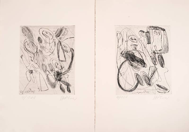 1937 Stuttgart - 2000 Taarstedt. Sechs Radierungen aus "Berliner Romanze", Walter Aue, Wolfgang Hake VErlag Köln, 1966. Je unten rechts signiert, unten links nummeriert 4/100. Größe der Drucke ca. 19,3 x 16 cm, Blattgröße je ca. 38,5 x 27 cm. Erworben 1980 in der Kost Regio Galerie.