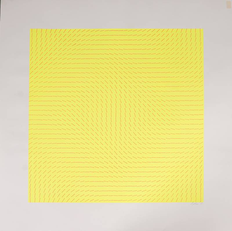 Böhm, Hartmut 1938 Kassel - 2021. Quadratstruktur III. Serigrafie. Unten rechts signiert und datiert (19)68. Verso bezeichnet "Griffelkunst 170." und betitelt. Druckgröße ca. 37 x 37 cm, Blattgröße ca. 49,5 x 49,5 cm. Oben rechts Abdruck eines ehemaligen Etiketts.