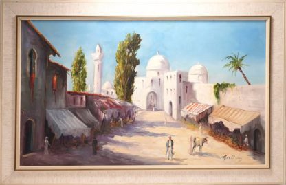 Orientalist 20. Jh. Orientalische Straßenszene. Öl auf Leinwand. Unten rechts unleserlich signiert. Größe ca. 60 x 100 cm, Rahmen ca. 75 x 115 cm. Der Versand ist nicht möglich.