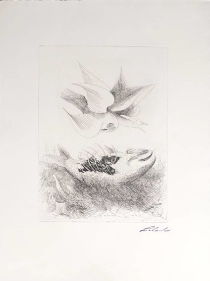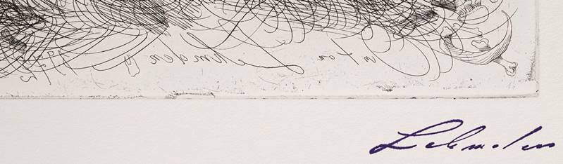 1929 Nitra - 2018 Wien. Toter Fisch und Vögel. Radierung auf Bütten. Unten rechts signiert, unten mittig Prägestempel "euro art". Druckgröße ca. 40 x 29,5 cm, Blattgröße ca. 64 x 48,5 cm. Lehmden war Mitbegründer der "Wiener Schule des Phantastischen Realismus".