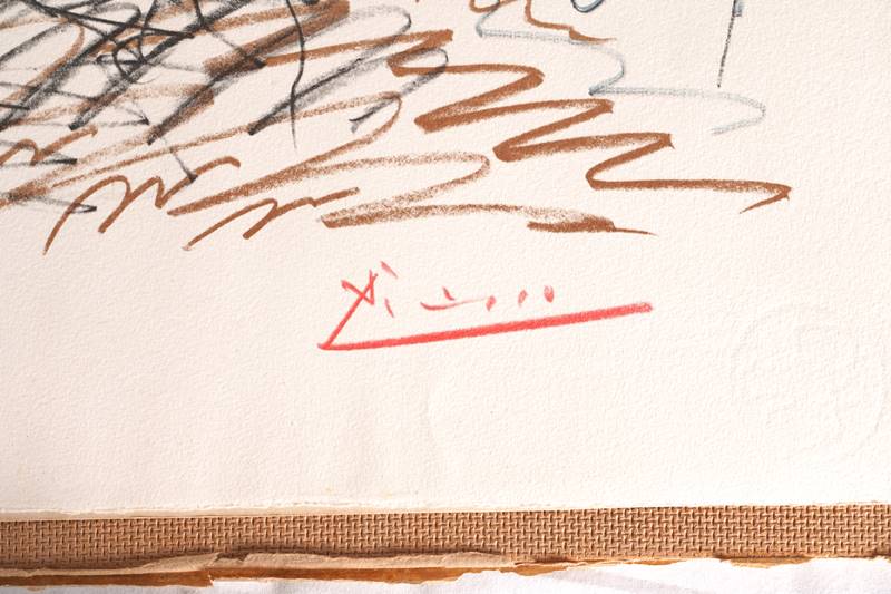 Nach Picasso, Pablo 1881 Málaga - 1973 Mougins, nach. Rotativer Offsetdruck auf Bütten. Hornberger-Druck. Nach der Lithographie Portrait de Jacqueline, 1956. Bloch 827. Verso bezeichnet. Größe ca. 63 x 45 cm. Zustand wie abgebildet.