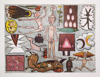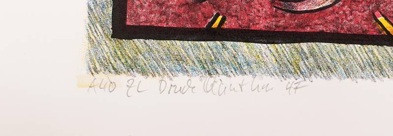 1950 Leipzig. "Er Leuch Tung" (Erleuchtung). Lithographie auf Papier. Unten rechts signiert und datiert (20)04, mittig betitelt und rechts bezeichnet. Druckgröße ca. 56,8 x 75,5 cm, Blattgröße ca. 64 x 83 cm. Oberfläche teils beschädigt.