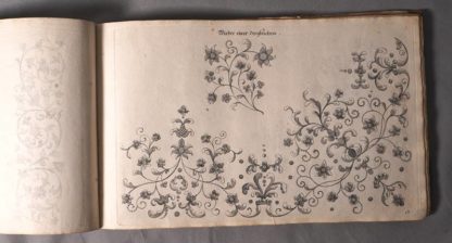 Ergötzungen oder neuerfundenes Näh- und Stickbuch...vorgestellt von Margarethe Helmin, Nürnberg. Stickmusterbuch wohl von 1730. Mit zahlreichen Kupferstichen. Ledereinband. Seiten teils eingerissen, stockfleckig, entlang des Randes gewellt. Nicht kollationiert. Größe ca. 21 x 33,5 cm.