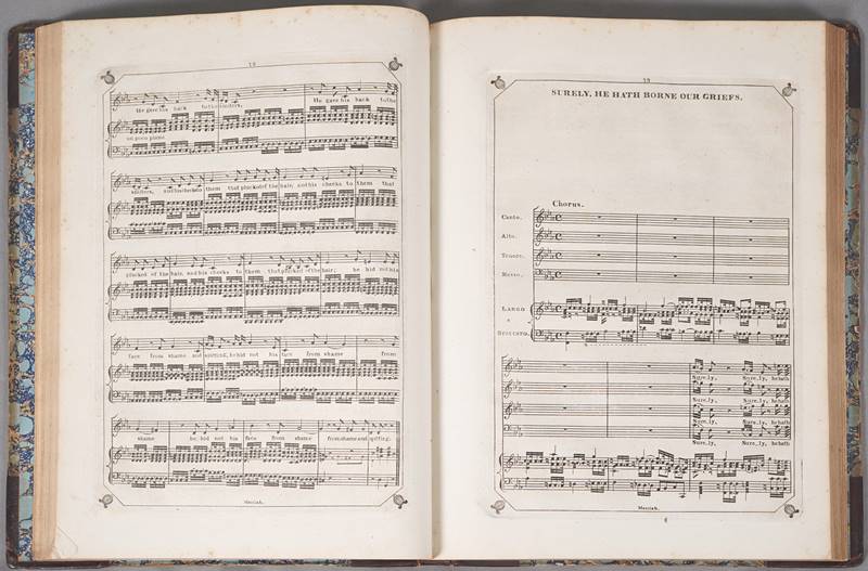 1685 Halle - 1759 Westminster, London. The Messiah, Composed by G.F. Handel, Arranged for the Organ or Piano Forte by Dr. John Clarke of Cambridge. London, printed for S.J. Button & J. Whitaker. Ca. 1805-08. Vol. V. Mit Kupferstich auf dem Frontispiz von Isaac Tyler (1759-1829), nach einem Gemälde von Carlo Dolci (1616-1686). 213 nummerierte Seiten, mit Frontispiz und Index am Ende. Teils mit Stockflecken. Teils auf erstem Deckblatt und auf Frontispiz mit Randnotizen. Bitte besichtigen sie selbst.