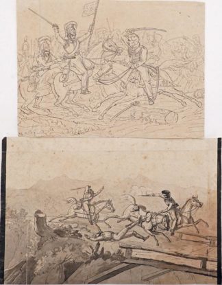 0207-Zwei Reiterschlacht-Zeichnungen